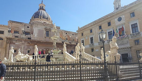 La piazza Pretoria mérite le détour. Et rassurez-vous, vous ne pouvez pas la manquer. Située sur l'artère principale de la ville, cette place très lumineuse possède une fontaine spectaculaire de la renaissance, composée d'un défilé de divinités placées en cercles concentriques, dans un magnifique équilibre organisé par les gradins, les balustrades et les jeux d'eau. C'est sans doute le point photo immanquable lors de votre visite de la ville.
